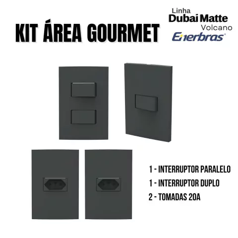 Kit Para Área Gourmet Tomadas e Interruptores Linha Dubai Volcano Matte Grafite Fosco Enerbras